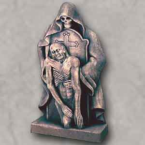 All of our foam products are of high quality rigid urethane foam. This means all of our tombstones, gargoyles and monuments are rugged and durable, unlike the cheap imported imitations. Plus, the color runs all the way through so even chips and scrapes look good, try doing that with a surface-painted import. Foam products can be glued with Liquid Nails or Gorilla Glue and spray painted with standard spray paint.